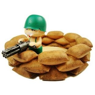 Пепельница «В засаде» выполнена в виде кругового блиндажа с вооруженным пулеметом Гатлинга солдатом внутри, бдительно охраняющим вверенные ему сокровища от посягательства врага. Используя ее по назначению, вы можете быть уверены, что ни один окурок не покинет места дислокации, покуда высокое начальство в лице вас или вашего товарища не даст на то разрешения.
